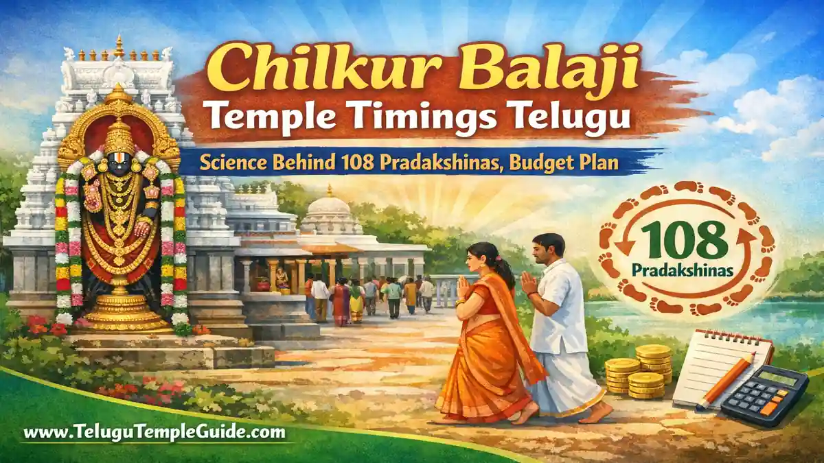 Chilkur Balaji Temple Timings Telugu: హైదరాబాద్ నగర శివార్లలో గండిపేట చెరువు సమీపంలో ఉన్న చిల్కూరు బాలాజీ దేవాలయం ప్రపంచవ్యాప్తంగా “వీసా బాలాజీ” దేవాలయంగా ప్రసిద్ధి చెందింది. ఈ క్షేత్రంలో స్వామి వారిని దర్శించుకుని 108 ప్రదక్షిణలు చేస్తే కోరిన కోర్కెలు నెరవేరుతాయని, ముఖ్యంగా విదేశాలకు వెళ్లాలనుకునే వారికి వీసా త్వరగా లభిస్తుందని భక్తుల నమ్మకం. మీరు 2026లో ఈ పవిత్ర క్షేత్రాన్ని సందర్శించాలని ప్లాన్ చేస్తుంటే, దర్శన సమయాలు మరియు ప్రదక్షిణల నియమాల గురించి ఈ సమగ్ర గైడ్ మీకు తోడ్పడుతుంది.